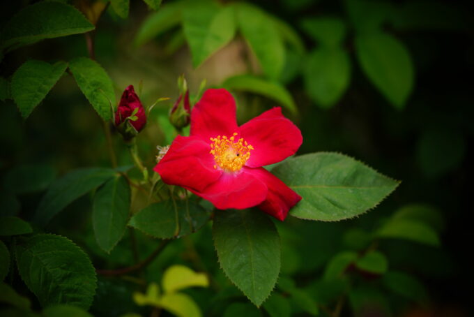 Couleurs : Rouge Dimension : 1.50 x 1.50 m Floraison : Non Remontant Parfum : sans Magnifiques fruits tout l’automne Pied mère présent dans la roseraie, indisponible à la vente