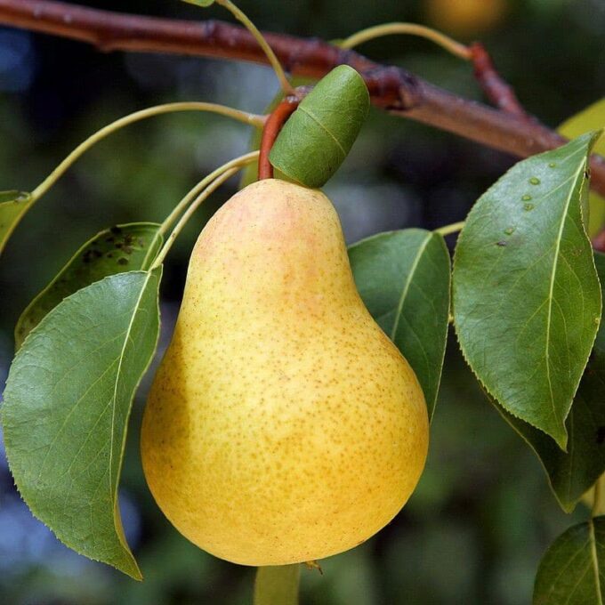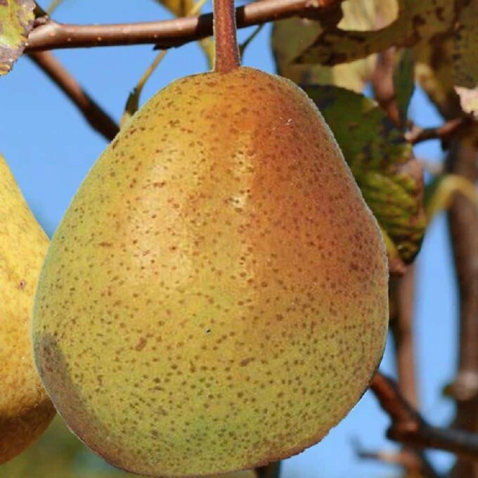 Fruit : Fruit assez gros, jaune paille, rouge à l’insolation. Chair très juteuse, fondante et parfumée. Maturité : Septembre.
