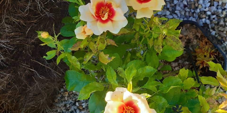 Couleurs : Jaune crème au cœur grenat