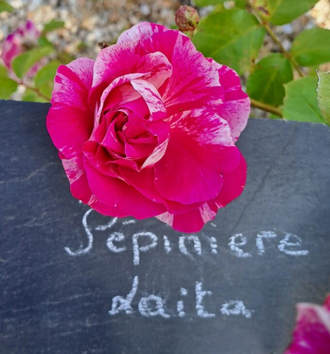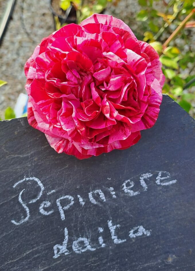 Couleurs: Rose strié de blanc Hauteur: 2.50 à 3.00 m Floraison: Très remontant Parfum: ++