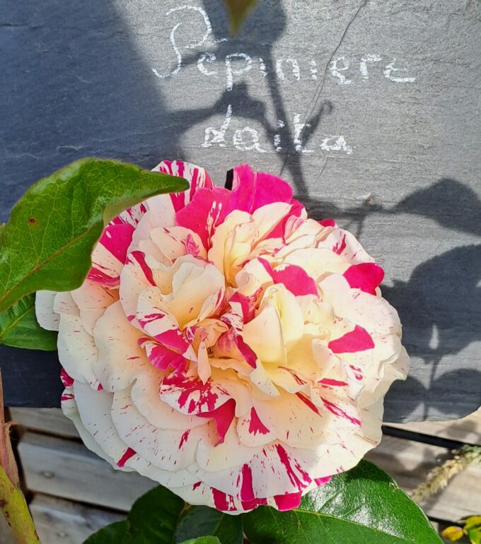 Couleurs : Violet strié blanc Hauteur : 2,5 à 3 m Floraison : Remontant Parfum : Sans