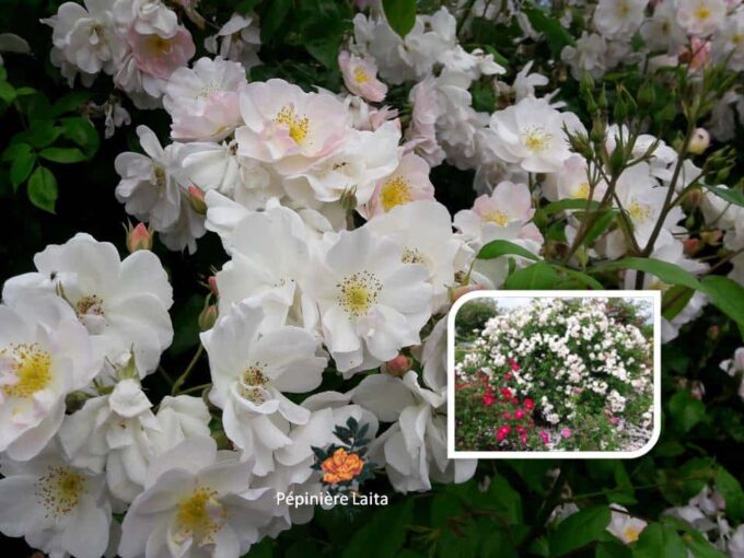 Couleurs : Blanc rose Hauteur : 3 à 4 m Floraison : Très remontant Parfum : +