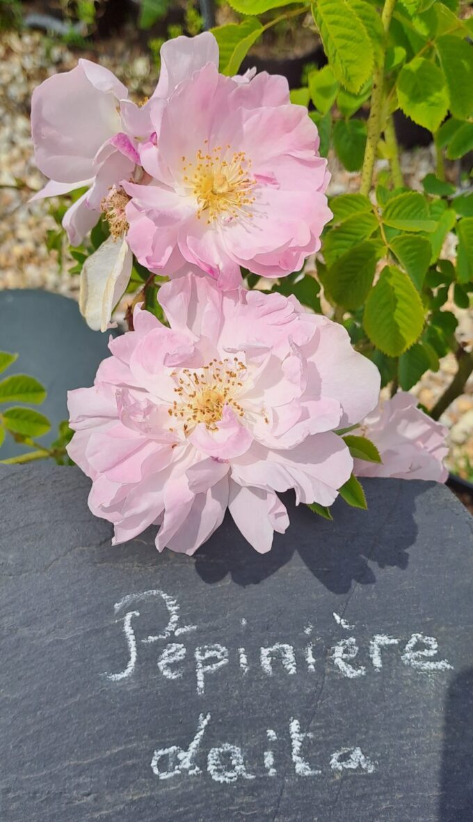 Couleurs : Rose tendre Hauteur : 1,50 m x 1,20 m Floraison : Non remontant Parfum : ++