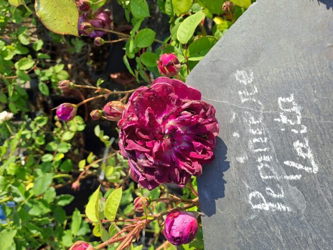 Couleurs : Rouge pourpre Hauteur : 1,50 x 1,20 m Floraison : Non remontant Parfum : +
