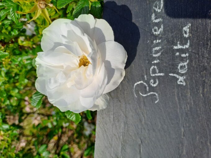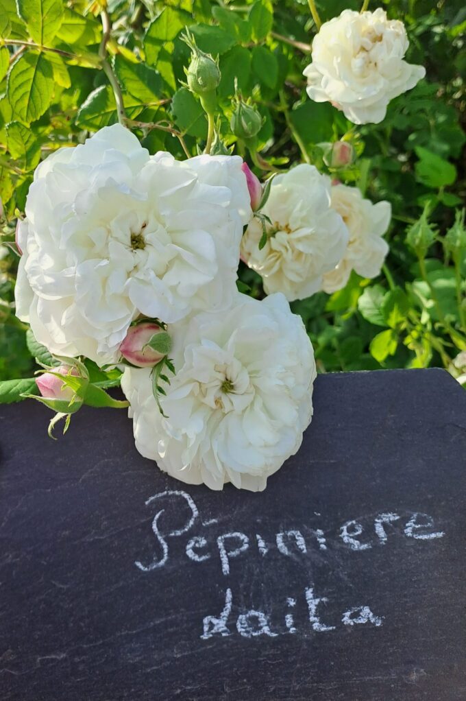 Couleurs : Blanc Hauteur : 1,50 x 1,50 m Floraison : Remontant Parfum : + Pied mère présent dans la roseraie, indisponible à la vente