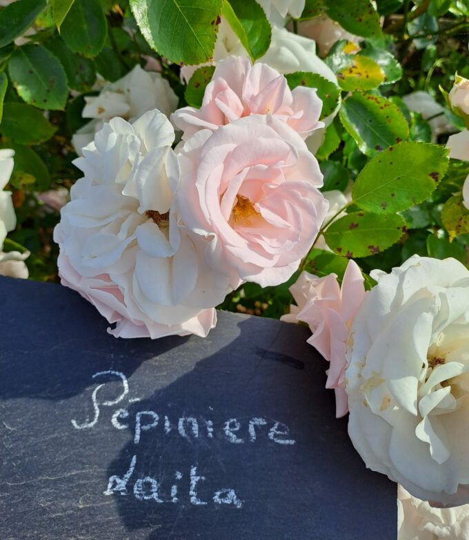 Couleurs : Blanc rose Hauteur : 1,80 x 1,20 m Floraison : Remontant Parfum : ++
