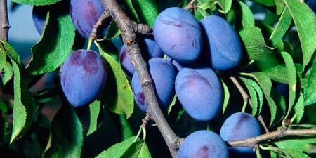 Fruit : Fruit ovoïde pourpre à violet foncé, chair jaune-verdâtre, acidulé et parfumée. Vigoureux.